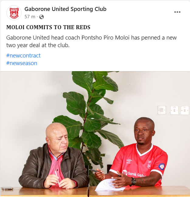 “Gaborone United head coach Pontsho Piro Moloi has penned a new two-year deal at the club,” Gaborone United SC’s official Facebook page posted as an announcement.